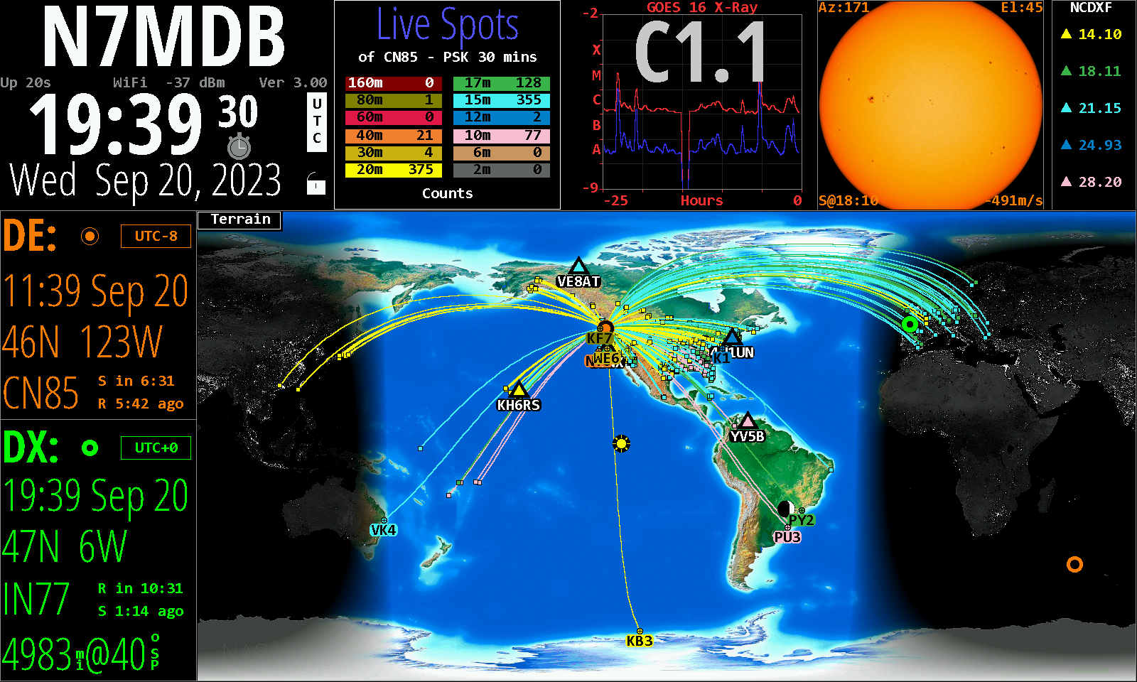 Our HamClock Setup automatically enables HamClock's "Live Spots" feature so you can see where bands are currently active at your QTH. All you have to do is enter your callsign and location on first run and everything else will just work.